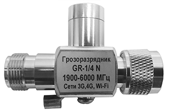 Четвертьволновой грозоразрядник GR – ¼ N предназначена для защиты приемо-передающих трактов устройств диапазона 1900-6000 МГц ( 3G , 4G , Wi-Fi 2.4 Ггц, Wi-Fi 3.5 Ггц , Wi-Fi 5.2 Ггц, Wi-Fi 5.6 Ггц) от статического электричества и грозовых разрядов. Грозоразрядник представляет собой отрезок линии передачи с включенным параллельно ему отрезком короткозамкнутого четвертьволнового шлейфа. Шлейф имеет бесконечное входное реактивное сопротивление на частотах 1900-6000 МГц и малое реактивное опротивление на частотах вне указанной полосы за исключением частот являющиеся гармоническими. Также GR – ¼ N обладает фильтрующими свойствами и защищает от внеполосных нежелательных сигналов и помех. Данная грозозащита имеет два высокочастотных разъема - N-female и N-male, что позволяет устанавливать её в существующие стыки коаксиальных фидеров реализованных на популярных соединителях серии N, без применения дополнительных джамперов. Узлы GR – ¼ N надежно защищены от вредных воздействий и влаги в герметичный корпус. Грозоразрядник GR – ¼ N имеет возможность подключения провода заземления. Заземление (электрическое соединение с контуром заземления) осуществляется кабелем - на корпусе разрядника имеется обжимная клемма под винт. Коаксиальный грозоразрядник GR – ¼ N не имеют механических или электрически изнашиваемых компонентов и не требуют технического обслуживания, срок службы грозоразрядника сравним со сроком службы антенно-фидерного комплекса.